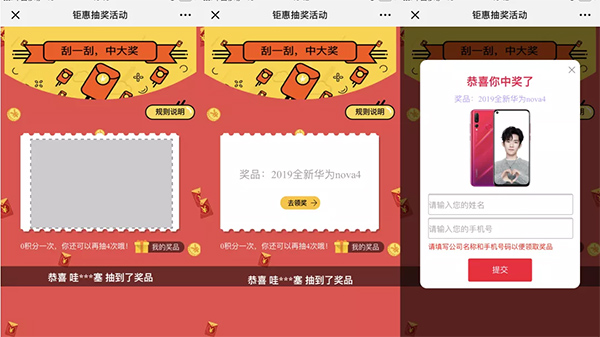 ※打開鏈接,刮一下將立即出現獎品,之后請點擊“去領獎”,并根據下方紅色提示信息填寫。